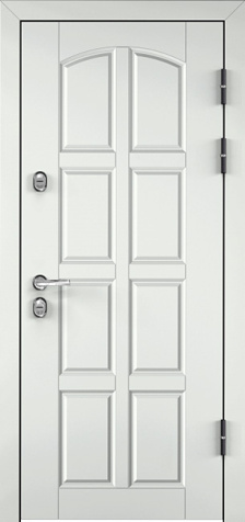 Железная входная дверь в частный дом софт белого цвета №1 — это стильное и практичное решение для вашего дома. Она идеально впишется в любой интерьер благодаря элегантному белому цвету и высококачественной отделке. Внешняя поверхность двери покрыта порошковым термонапылением, которое придает ей устойчивость к внешним воздействиям и повреждениям. Внутреннее покрытие выполнено из плиты МДФ, что добавляет прочности и долговечности. Металлическая конструкция с листом толщиной 2 мм и усиленными ребрами жесткости на основе профильных труб 40х25 мм гарантирует надежность и безопасность. Два контура резинового уплотнителя обеспечивают отличную герметичность. Дверь оснащена двумя замками с тремя ригелями, что повышает уровень защиты. Также предусмотрена возможность добавления зеркала, стеклопакета и кованых элементов для более индивидуального внешнего вида. Железная входная дверь в частный дом софт белого цвета №1 от производителя: быстрое изготовление и монтаж в Домодедово, индивидуальные размеры, широкий выбор материалов и фурнитуры, официальная гарантия до 10 лет.