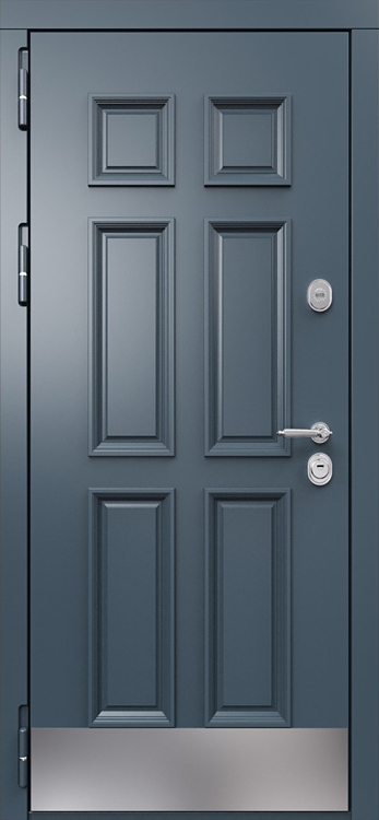 Дверь стальная МДФ эмаль №563 — это удачное сочетание надежной металлической основы и аккуратной декоративной отделки. Каркас из профильной трубы и стальной лист толщиной 2 мм обеспечивают прочность и устойчивость к взлому, а ребра жесткости повышают общий ресурс эксплуатации. Важной особенностью модели является наличие терморазрыва в коробке и полотне: конструкция эффективно препятствует промерзанию зимой, исключает появление конденсата и сохраняет тепло в помещении. Панели МДФ с ПВХ-покрытием, использованные с обеих сторон, защищены от влаги и мелких механических повреждений, благодаря чему дверь долго сохраняет привлекательный внешний вид. Два контура резинового уплотнителя дополнительно усиливают защиту от сквозняков и уличного шума. Такая дверь органично подходит для частных домов, квартир и офисов, сочетая в себе надежность стали и практичность современной отделки. Дверь стальная МДФ эмаль №563 от производителя: быстрое изготовление и монтаж в Домодедово, индивидуальные размеры, широкий выбор материалов и фурнитуры, официальная гарантия до 10 лет.