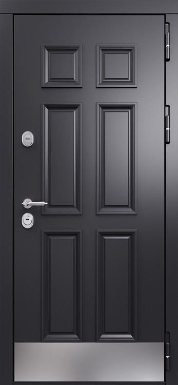 Входная дверь с МДФ №566 создана для тех, кто ценит прочность металла и уютный внешний вид в одном решении. Она одинаково хорошо вписывается в частный дом, квартиру или офис, подчеркивая солидность пространства и обеспечивая надежную защиту. Каркас и полотно собраны из профильных труб, усиленных ребрами жесткости, а стальной лист толщиной 2 мм гарантирует устойчивость к взлому и длительный срок службы. С обеих сторон дверь облицована МДФ панелями с ПВХ-покрытием, что делает поверхность более устойчивой к истиранию и мелким повреждениям, сохраняя привлекательность даже при интенсивной эксплуатации. Панели легко очищаются и не выгорают на солнце, благодаря чему дверь подходит и для уличной установки. Два контура уплотнения надежно защищают от сквозняков и посторонних запахов, а при необходимости можно дополнительно усилить конструкцию тепло- и шумоизоляцией. Модель №566 сочетает в себе сдержанный дизайн и функциональность, делая ее практичным выбором для самых разных помещений. Входная дверь с МДФ №566 от производителя: быстрое изготовление и монтаж в Домодедово, индивидуальные размеры, широкий выбор материалов и фурнитуры, официальная гарантия до 10 лет.