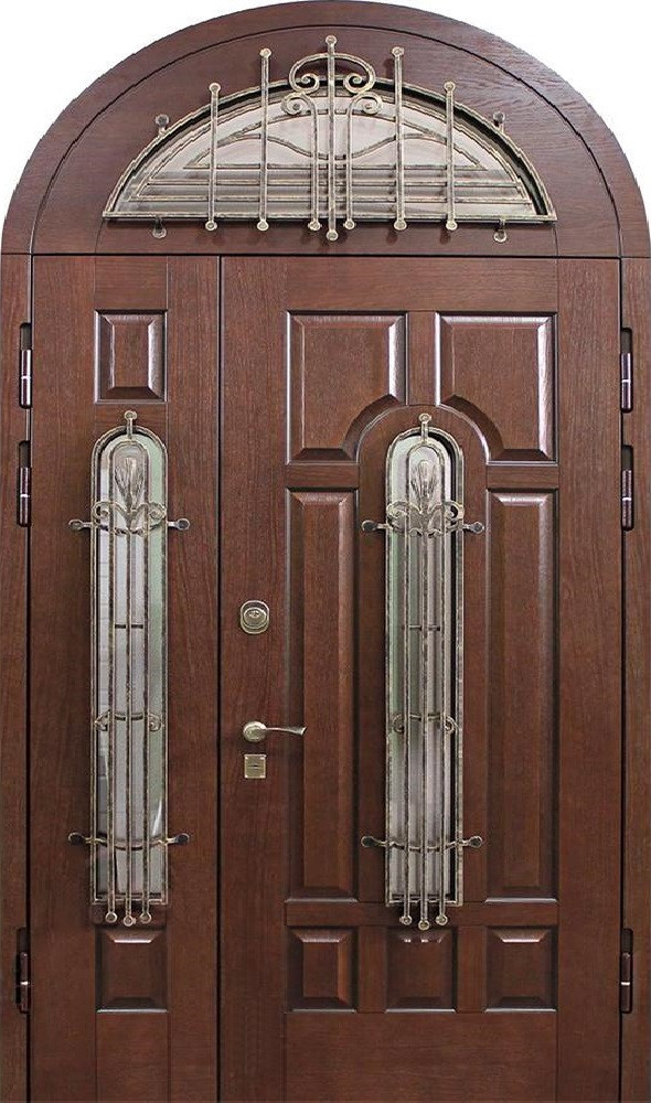 Арочные конструкции всегда придают входу выразительность и особый статус, а если добавить две створки и стеклянные вставки, дверь превращается в центральный элемент фасада. Натуральное дерево в отделке подчеркивает солидность и гармонично сочетается с металлом, из которого выполнено основание: каркас и полотно из профильных труб и стальной лист толщиной 2 мм обеспечивают прочность и долговечность. Для удобства и безопасности используются два замка разного типа — сувальдный и цилиндровый, оба с тремя ригелями, что делает взлом крайне затруднительным. Двухстворчатая арочная дверь со стеклом в частный дом №14 может изготавливаться любого размера и адаптироваться под архитектуру конкретного здания. Возможна установка дополнительных элементов: зеркало, стеклопакет, кованые детали или даже видеодомофон. Резиновое уплотнение по двум контурам защищает от сквозняков, а возможность выбора отделки и фурнитуры открывает простор для индивидуального дизайна. Двухстворчатая арочная дверь со стеклом в частный дом №14 от производителя: быстрое изготовление и монтаж в Домодедово, индивидуальные размеры, широкий выбор материалов и фурнитуры, официальная гарантия до 10 лет.