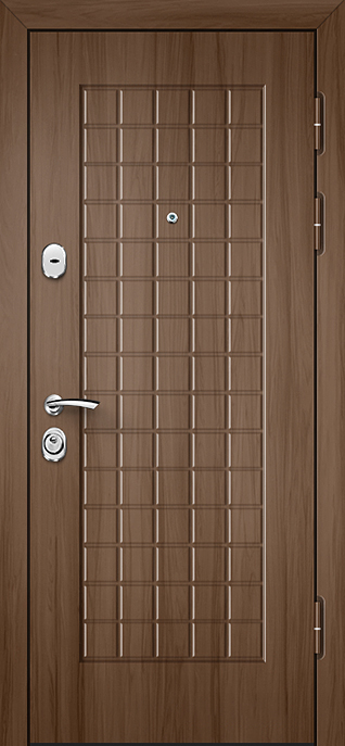 Стальная дверь для дома №21 сочетает лаконичный внешний облик с серьёзной внутренней прочностью. Каркас собран из профильной трубы и усилен рёбрами жёсткости, а металлический лист толщиной 2 мм надёжно защищает от механических воздействий. Внутренняя и внешняя отделка выполнена плитами МДФ — материалом, который одинаково хорошо смотрится как в частном доме, так и в квартире или офисе. Такая облицовка устойчива к повседневным нагрузкам, сохраняет форму и позволяет двери годами выглядеть аккуратно. Два контура уплотнителей удерживают тепло и блокируют сквозняки, а блокираторы повышают уровень безопасности. Несмотря на отсутствие терморазрыва, модель остаётся практичным выбором для эксплуатации в стандартных условиях. Строгий дизайн двери легко впишется в современную архитектуру, а прочная конструкция обеспечит уверенность и долговечность. Стальная дверь для дома №21 от производителя: быстрое изготовление и монтаж в Домодедово, индивидуальные размеры, широкий выбор материалов и фурнитуры, официальная гарантия до 10 лет.