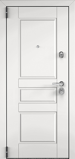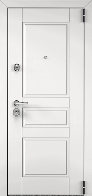 Белая металлическая дверь входная для дома №33 выделяется своим свежим и современным обликом. Универсальный белый цвет делает её уместной как в частном коттедже, так и в квартире или офисе, визуально добавляя простора и подчеркивая аккуратность фасада или интерьера. Конструкция двери основана на стальном листе толщиной 2 мм и усилена профильными трубами, что гарантирует надежность и устойчивость к нагрузкам. Важная особенность модели — наличие терморазрыва в полотне и коробке: благодаря этому дверь не промерзает в зимний период, исключается конденсат и сохраняется комфорт внутри помещения. Внешняя и внутренняя отделка выполнена из МДФ с ПВХ-покрытием, которое защищает поверхность от влаги и механических повреждений, сохраняя первозданный вид надолго. Два контура уплотнителя обеспечивают герметичность и дополнительную защиту от сквозняков. Эта дверь удачно сочетает эстетику и практичность, создавая надежный вход в любое жилище. Белая металлическая дверь входная для дома №33 от производителя: быстрое изготовление и монтаж в Домодедово, индивидуальные размеры, широкий выбор материалов и фурнитуры, официальная гарантия до 10 лет.