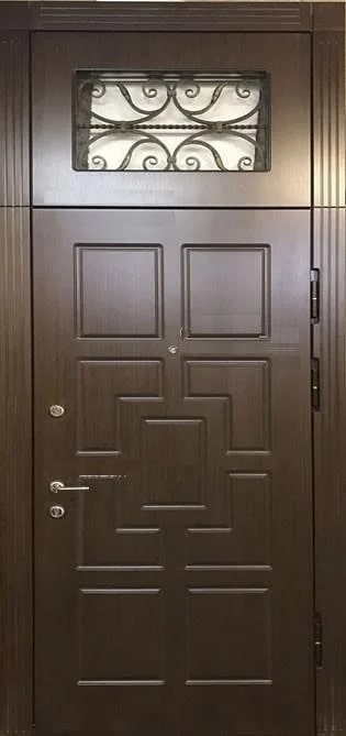 Эта входная дверь с решеткой и фрамугой №2 — практичный и надежный выбор для тех, кто ищет баланс между безопасностью и эстетикой. Ее конструкция выполнена из профильной трубы 50х25 мм и металла толщиной 2 мм, что гарантирует прочность и долговечность. Внешняя отделка из МДФ придает двери современный вид и защищает от внешних воздействий, таких как царапины и вмятины. Фрамуга добавляет свет в помещение, а решетка обеспечивает дополнительную безопасность. Резиновый уплотнитель с двумя контурами эффективно защищает от холода и пыли, а блокираторы обеспечивают надежную защиту от несанкционированного доступа. Эта модель может быть дополнена стеклопакетом, зеркалом или коваными элементами для улучшения внешнего вида, а также оборудована видеодомофоном для дополнительного удобства. Входная дверь с решеткой и фрамугой №2 от производителя: быстрое изготовление и монтаж в Домодедово, индивидуальные размеры, широкий выбор материалов и фурнитуры, официальная гарантия до 10 лет.