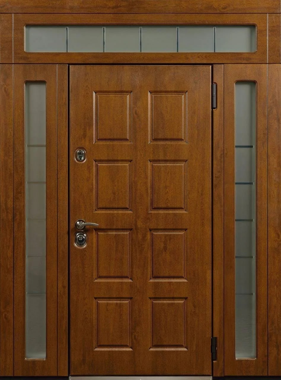 Элитная парадная дверь с фрамугой №4 станет не только защитой вашего дома, но и его визитной карточкой. Ее внешний вид, сочетающий плиту МДФ с ПВХ-покрытием, выглядит современно и гармонично, сохраняя стойкость к внешним воздействиям, таким как царапины и вмятины. Конструкция, выполненная из профильной трубы 50х25 мм и металлического листа толщиной 2 мм, гарантирует долговечность и прочность. Благодаря фрамуге дверь пропускает свет, добавляя пространству легкости. Встроенные замки с ригелями обеспечивают надежную защиту. Возможность выбора направления открывания и комбинирования отделок делает эту модель универсальной для любых интерьеров. Также можно дополнить дверное полотно зеркалом или стеклопакетом, а если требуется, заменить замки на более высокозащищенные модели. Элитная парадная дверь с фрамугой №4 от производителя: быстрое изготовление и монтаж в Домодедово, индивидуальные размеры, широкий выбор материалов и фурнитуры, официальная гарантия до 10 лет.