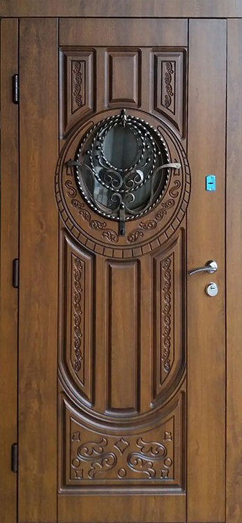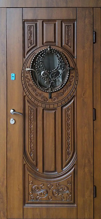 Владельцы коттеджей ценят входные конструкции, которые одинаково подчеркивают статус и защищают от любых внешних факторов. Здесь удачно сочетаются прочный металл и массив дуба, придающий поверхности солидность и благородство. Натуральное дерево сохраняет цвет и текстуру долгие годы, устойчиво к механическим повреждениям и перепадам температуры. Внутри конструкции скрыт стальной каркас толщиной 1,5 мм с ребрами жесткости и противосъёмными блокираторами, что делает полотно практически неприступным. Особое преимущество — терморазрыв коробки и полотна, благодаря которому дверь не промерзает даже в сильные морозы и сохраняет тепло в доме. Именно на этом контрасте надежности и эстетики выделяется железная дверь со стеклом и ковкой №21, украшенная изящными декоративными элементами. Три контура магнитного уплотнения обеспечивают герметичность, а система замков Kale Kilit повышает уровень безопасности, при этом конструкция допускает установку современных умных решений и дополнительных декоративных опций. Железная дверь со стеклом и ковкой №21 от производителя: быстрое изготовление и монтаж в Домодедово, индивидуальные размеры, широкий выбор материалов и фурнитуры, официальная гарантия до 10 лет.
