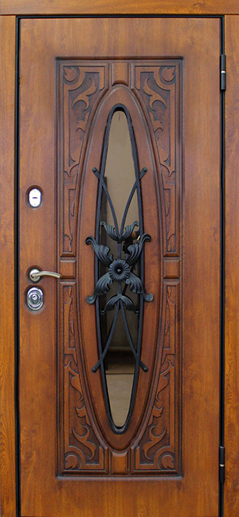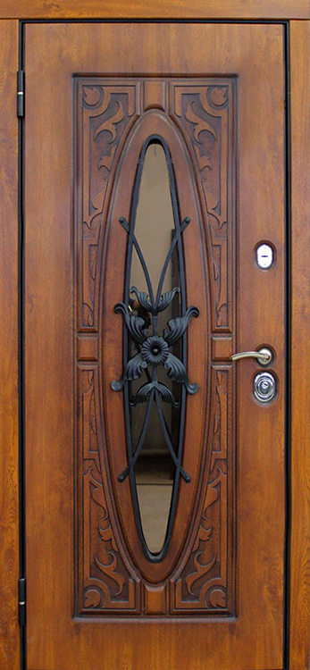 В частном доме дверь должна быть не просто барьером, а настоящей визитной карточкой, и именно эту задачу решает входная дверь со стеклом и ковкой №23. Натуральное дерево в отделке придает ей благородный и теплый вид, а декоративная ковка превращает конструкцию в выразительный элемент архитектуры. Внутри скрыт стальной каркас с листом металла 1,5 мм и противосъёмными блокираторами, что обеспечивает прочность и устойчивость к взлому. Особого внимания заслуживает наличие терморазрыва как в коробке, так и в полотне: он защищает от промерзания, исключает появление конденсата и помогает сохранять тепло зимой и прохладу летом. Тройной контур магнитного уплотнения усиливает герметичность и снижает уровень уличного шума, а пенопласт повышенной плотности в качестве наполнителя добавляет теплоизоляции. Входная дверь в частный дом со стеклом и ковкой №23 гармонично сочетает надежность и эстетику, позволяя владельцу адаптировать её под стиль фасада с помощью дополнительных декоративных решений. Входная дверь в частный дом со стеклом и ковкой №23 от производителя: быстрое изготовление и монтаж в Домодедово, индивидуальные размеры, широкий выбор материалов и фурнитуры, официальная гарантия до 10 лет.