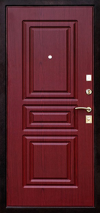 Строгая, практичная и надёжная конструкция делает эту модель удобной для установки в квартире или офисе, где важны защита и долговечность. Каркас и полотно выполнены из профильной трубы, усилены стальным листом толщиной 2 мм и ребрами жёсткости, что обеспечивает устойчивость к нагрузкам и попыткам взлома. Снаружи дверь облицована ламинированными панелями, сохраняющими аккуратный вид даже при интенсивной эксплуатации, внутри — МДФ со шпоном, создающим ощущение уюта и солидности. Два контура уплотнителей защищают от сквозняков, при желании можно добавить шумо- и теплоизоляцию для большего комфорта. Дверь стальная с отделкой ламинат №7 укомплектована двумя надёжными замками российского производства, а при необходимости их легко заменить на более современные механические или электронные системы. Дверь стальная с отделкой ламинат №7 от производителя: быстрое изготовление и монтаж в Домодедово, индивидуальные размеры, широкий выбор материалов и фурнитуры, официальная гарантия до 10 лет.