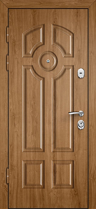 Филёнчатая отделка всегда придаёт дверному полотну особый шарм, создавая эффект глубины и аккуратного рельефа. Входная дверь МДФ с внешней панелью под филёнку №537 универсальна и одинаково хорошо смотрится на фасаде частного дома, в офисе или в квартире. Отделка из МДФ-плиты устойчива к мелким повреждениям, не выгорает и сохраняет аккуратный вид при ежедневной эксплуатации, а при необходимости легко комбинируется с другими декоративными элементами. В основе конструкции — каркас из профильной трубы, лист стали толщиной 2 мм и рёбра жёсткости, обеспечивающие надёжность и жёсткость всей системы. Для удобства и безопасности предусмотрены два замка: сувальдный Просам и цилиндровый Мосрентген. Два контура уплотнения повышают комфорт эксплуатации, а при желании дверь можно дополнить зеркалом, стеклопакетом или коваными вставками, сделав её не только прочной, но и выразительной частью интерьера. Входная дверь МДФ и внешней панелью под филенку №537 от производителя: быстрое изготовление и монтаж в Домодедово, индивидуальные размеры, широкий выбор материалов и фурнитуры, официальная гарантия до 10 лет.