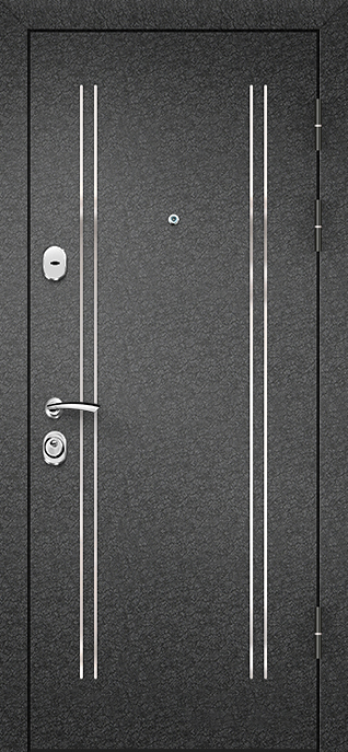 Дверь металлическая в порошке №59 — надежное решение для квартир, офисов и подъездов, где требуется прочная конструкция и аккуратный внешний вид. Снаружи используется молотковое напыление, которое не боится механических повреждений и долго сохраняет насыщенный цвет, а внутренняя поверхность отделана ламинатом, создающим ощущение уюта и подчеркивающим практичность модели. Каркас собран из профильной трубы 50х25 мм, усилен ребрами жесткости и листом стали толщиной 2 мм, что придает двери устойчивость к силовым нагрузкам. Дополнительную защиту обеспечивают два замка: верхний сувальдный «Просам» и нижний цилиндровый «Мосрентген», оба с тремя ригелями. Два контура резинового уплотнения помогают справляться со сквозняками, а при желании дверь можно укомплектовать шумо- и теплоизоляцией. Модель №59 легко адаптируется под любые требования: возможна комбинация отделок, установка зеркала, стеклопакета или декоративной ковки. Дверь металлическая в порошке №59 от производителя: быстрое изготовление и монтаж в Домодедово, индивидуальные размеры, широкий выбор материалов и фурнитуры, официальная гарантия до 10 лет.
