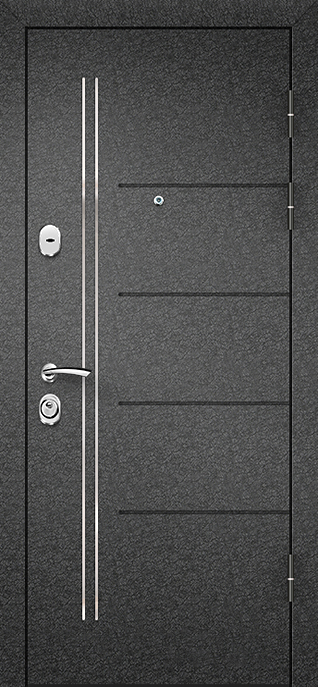 Порошковая входная дверь №65 объединяет прочность металла и практичную отделку, делая её универсальным выбором для квартиры, офиса или подъезда. Каркас и полотно собраны из профильной трубы, усиленной ребрами жесткости, а стальной лист толщиной 2 мм придает конструкции дополнительную устойчивость к нагрузкам. Снаружи нанесено молотковое напыление — покрытие, стойкое к царапинам и атмосферным воздействиям, благодаря чему дверь долго сохраняет аккуратный внешний вид. Внутренняя сторона оформлена ламинированными панелями, создающими ощущение тепла и комфорта. Два резиновых контура уплотнения помогают отсечь сквозняки и пыль, при необходимости можно добавить шумо- и теплоизоляцию. Модель №65 сочетает надежность и лаконичность, а её внешний вид гармонично впишется как в жилое пространство, так и в деловую среду. Порошковая входная дверь №65 от производителя: быстрое изготовление и монтаж в Домодедово, индивидуальные размеры, широкий выбор материалов и фурнитуры, официальная гарантия до 10 лет.