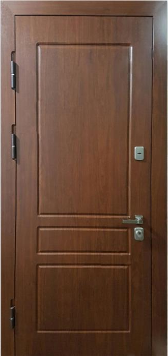 Дверь входная уличная с терморазрывом №41 – это надежная и стильная модель, идеально подходящая для частных домов и коттеджей. Конструкция двери с терморазрывом в коробке и полотне эффективно защищает от холодного воздуха и влаги, обеспечивая стабильный микроклимат внутри помещения. Внешняя и внутренняя отделка из панелей МДФ с ПВХ покрытием не только привлекает внимание своим современным дизайном, но и обеспечивает отличную стойкость к механическим повреждениям, а также долговечность. Металлическое полотно толщиной 1,5 мм с ребрами жесткости из профильных труб гарантирует высокую прочность, а также надежную защиту от взлома. Шумо- и теплоизоляция из пенопласта повышенной плотности создают дополнительный комфорт. Дверь оснащена высококачественными замками Kale Kilit с тремя ригелями, что обеспечивает высокий уровень безопасности. Дверь входная уличная с терморазрывом №41 от производителя: быстрое изготовление и монтаж в Домодедово, индивидуальные размеры, широкий выбор материалов и фурнитуры, официальная гарантия до 10 лет.