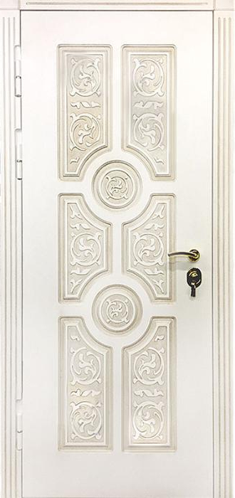 Дверь уличная с терморазрывом №49 — это надежное решение для частных домов и коттеджей, которое обеспечит комфорт и защиту от внешних факторов. С терморазрывом в коробке и полотне, эта дверь исключает проникновение холода, сохраняя тепло в доме и предотвращая появление конденсата. Внешняя и внутренняя отделка выполнена с использованием накладки МДФ, что придает двери привлекательный вид и долговечность, стойкость к механическим повреждениям и атмосферным воздействиям. Ковка, как элемент декора, добавляет изысканности и подчеркивает индивидуальность. Металлическая конструкция с толщиной полотна 1,5 мм и каркасом из профильных труб гарантирует прочность и устойчивость. Уплотнение с тремя контурами магнитного герметика и высокая шумо- и теплоизоляция на основе пенопласта делают дверь идеальной для использования в уличных условиях. Возможность замены замков и добавления стеклопакетов или кованых элементов позволяет индивидуализировать дверное решение под любые потребности. Дверь уличная с терморазрывом №49 от производителя: быстрое изготовление и монтаж в Домодедово, индивидуальные размеры, широкий выбор материалов и фурнитуры, официальная гарантия до 10 лет.
