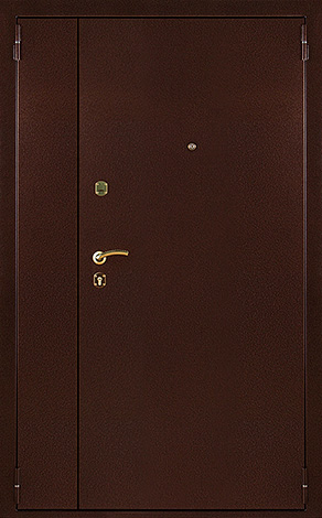 Двухстворчатая металлическая тамбурная дверь эконом №1 сочетает в себе простоту и надежность, что делает её отличным выбором для установки в местах с высокой проходимостью. Внешняя порошковая окраска обеспечивает стойкость к механическим повреждениям, а внутренняя отделка из ламинированных панелей придает двери элегантный вид, сохраняя при этом долговечность и устойчивость к внешним воздействиям. Каркас и полотно выполнены из профильной трубы 50х25 мм, что гарантирует прочность конструкции. Толщина металла 2 мм и наличие ребер жесткости добавляют дополнительную жесткость и защиту. Дверь оснащена замками "Просам" и "Мосрентген", каждый из которых имеет по три ригеля для надежного запирания. Резиновое уплотнение с двумя контурами надежно защищает от попадания влаги и пыли. Возможность комбинировать отделки и добавить зеркало, стеклопакет или кованые элементы позволяет сделать дверь не только функциональной, но и стильной. Тамбурная металлическая двухстворчатая дверь эконом №1 от производителя: быстрое изготовление и монтаж в Домодедово, индивидуальные размеры, широкий выбор материалов и фурнитуры, официальная гарантия до 10 лет.
