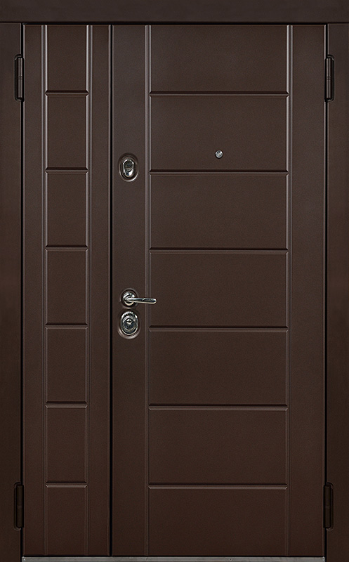 Двухстворчатая входная дверь в современном стиле хай-тек №13 сочетает в себе минимализм и практичность. Панели МДФ с ПВХ-покрытием, использованные как для внешней, так и для внутренней отделки, обладают высокой стойкостью к механическим повреждениям, таким как царапины и вмятины, что делает дверь идеальным решением для помещений с высокой проходимостью. Стильный внешний вид, выполненный в современном стиле, легко впишется в интерьер любого современного здания. Двухстворчатая входная дверь в современном стиле хай-тек №13 от производителя: быстрое изготовление и монтаж в Домодедово, индивидуальные размеры, широкий выбор материалов и фурнитуры, официальная гарантия до 10 лет.