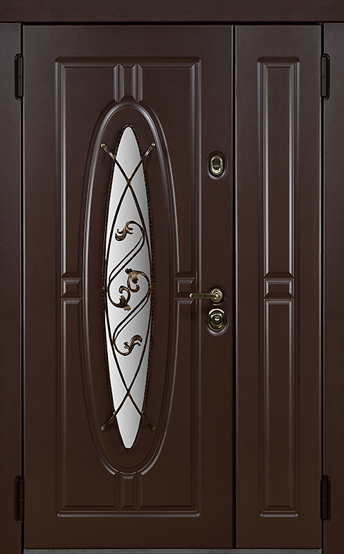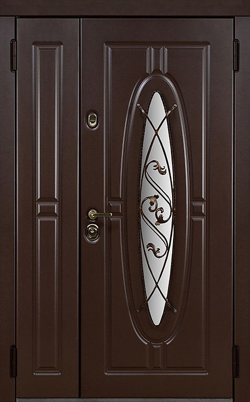 Двойная уличная дверь с овальным стеклом и художественной ковкой №14 — это уникальное сочетание функциональности и эстетики. Панели МДФ с ПВХ-покрытием, используемые как для внешней, так и для внутренней отделки, обладают высокой стойкостью к внешним воздействиям, сохраняя свой внешний вид на долгие годы. Внешний декор в виде художественной ковки придаёт двери особый шарм, подчеркивая её стиль и индивидуальность. Двойная уличная дверь с овальным стеклом и художественной ковкой №14 от производителя: быстрое изготовление и монтаж в Домодедово, индивидуальные размеры, широкий выбор материалов и фурнитуры, официальная гарантия до 10 лет.