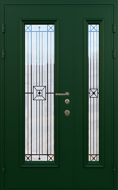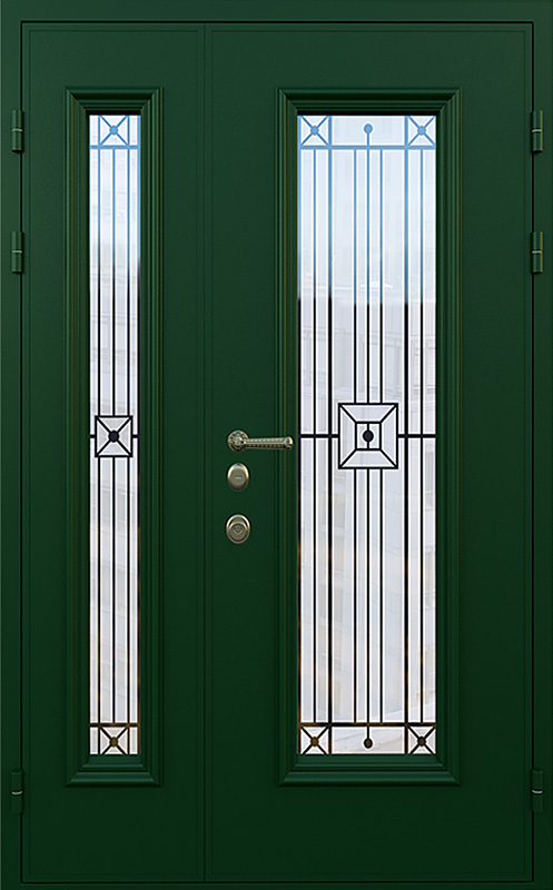 Зеленая полуторная дверь со стеклопакетом для частного дома №18 — это идеальный выбор для тех, кто хочет добавить в свой дом надежность и стиль. Элементы декора, такие как багет и ковка, придают двери элегантный вид, который идеально гармонирует с фасадом загородного дома. Панели МДФ с ПВХ-покрытием, использованные для внешней и внутренней отделки, обеспечивают высокую стойкость к механическим повреждениям и внешним воздействиям, сохраняя прекрасный внешний вид на долгое время. Зеленая полуторная дверь со стеклопакетом для частного дома №18 от производителя: быстрое изготовление и монтаж в Домодедово, индивидуальные размеры, широкий выбор материалов и фурнитуры, официальная гарантия до 10 лет.