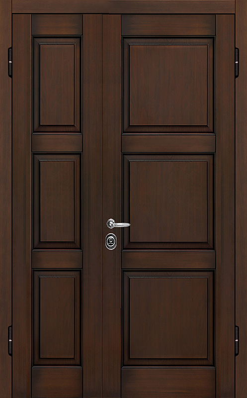 Двойная филенчатая дверь для загородного дома венге №7 сочетает в себе элегантность и прочность. Ее внешняя отделка выполнена из панелей МДФ с ПВХ, что придает двери современный вид, а также обеспечивает устойчивость к механическим повреждениям и долговечность. Каркас из профильной трубы 50х25 мм и полотно толщиной 2 мм гарантируют надежность и устойчивость к нагрузкам. Ребра жесткости из профильных труб 40х25 мм усиливают конструкцию, а уплотнение с двумя контурами защищает от проникновения влаги и пыли. Замки "Просам" и "Мосрентген" с тремя ригелями обеспечивают высокий уровень безопасности. В дверь можно добавить дополнительные элементы, такие как стеклопакет, зеркало или кованые детали, что позволяет адаптировать ее под любой интерьер. Терморазрывы в коробке и полотне способствуют лучшей теплоизоляции, обеспечивая комфорт в любое время года. Двойная филенчатая дверь для загородного дома венге №7 от производителя: быстрое изготовление и монтаж в Домодедово, индивидуальные размеры, широкий выбор материалов и фурнитуры, официальная гарантия до 10 лет.