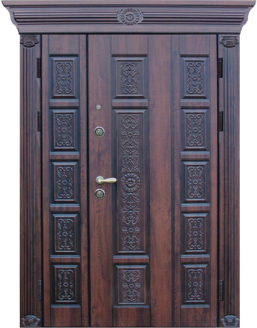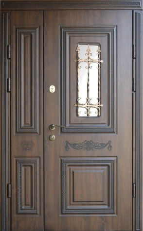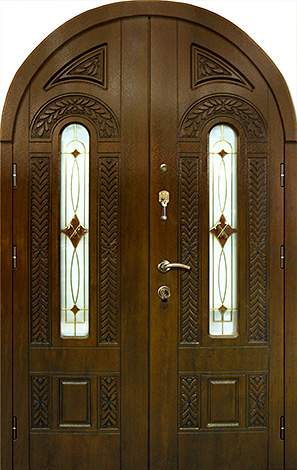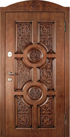 Арочный проём всегда смотрится благородно и подчёркивает архитектурный стиль дома, а витраж вносит в фасад лёгкость и игру света. Арочная входная дверь с витражом в частный дом №69 сочетает прочную металлическую основу с отделкой панелями из натурального дерева, которые сохраняют свою красоту долгие годы и стойко переносят ежедневную эксплуатацию. В конструкции предусмотрен лист стали толщиной 2 мм и система ребер жёсткости, что обеспечивает высокий уровень безопасности и долговечности. Терморазрыв в коробке и полотне защищает от промерзания и появления конденсата, сохраняя тепло в доме даже в сильные морозы. Итальянские замки Cisa цилиндрового и сувальдного типа дополняют защиту, гарантируя надёжность при ежедневном использовании. Возможность индивидуальной отделки, добавления зеркала, кованых элементов или стеклопакета делает эту модель не только функциональной, но и выразительной деталью экстерьера. Арочная входная дверь с витражом в частный дом №69 от производителя: быстрое изготовление и монтаж в Домодедово, индивидуальные размеры, широкий выбор материалов и фурнитуры, официальная гарантия до 10 лет.