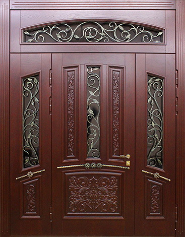 Эта модель создана для тех, кто ценит солидность и внушительный внешний вид парадного входа. Натуральный массив дуба в отделке придаёт дверному полотну статусный характер, а стеклянные вставки позволяют добавить света и лёгкости фасаду дома. При этом основа конструкции выполнена из прочной профильной трубы с использованием листа металла толщиной 2 мм и ребер жёсткости, что гарантирует надёжность и устойчивость к взлому. Двустворчатая входная дверь со стеклом №39 удобна для широких проёмов коттеджей и частных домов, обеспечивая не только безопасность, но и удобство при внесении крупногабаритной мебели. Итальянские замки Cisa сочетают в себе высокий класс защиты и плавность хода механизма, а наличие двух контуров уплотнения дополнительно защищает от сквозняков. Возможность комбинировать отделку, добавить зеркало, витраж или кованые элементы делает модель гибкой для индивидуального дизайна и подчеркивает её представительский статус. Двустворчатая входная дверь со стеклом №39 от производителя: быстрое изготовление и монтаж в Домодедово, индивидуальные размеры, широкий выбор материалов и фурнитуры, официальная гарантия до 10 лет.