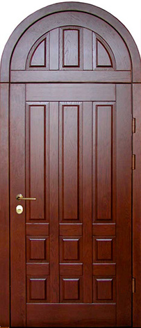 Высокая арочная входная дверь массив №26 идеально подчеркнет величие вашего частного дома или коттеджа. Внешняя и внутренняя отделка из массива дерева придают двери естественную красоту и изысканность. Каркас и полотно выполнены из профильной трубы 50х25 мм, с дополнительной жесткостью благодаря ребрам из профильных труб 40х25 мм и металлическому листу толщиной 2 мм. Элементы конструктивной прочности обеспечат долговечность, а два контура резинового уплотнителя гарантируют надежную герметичность. Несмотря на отсутствие терморазрыва, дверь остается надежной и безопасной, дополнительно оснащенной блокираторами для защиты. Эта дверь станет настоящим акцентом в вашем доме, сочетая эстетическую привлекательность и отличную защиту. Высокая арочная входная дверь массив №26 от производителя: быстрое изготовление и монтаж в Домодедово, индивидуальные размеры, широкий выбор материалов и фурнитуры, официальная гарантия до 10 лет.