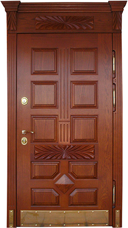 Эксклюзивная высокая входная дверь с железным отбойником №36 — это образец элегантности и функциональности, который идеально впишется в любой частный дом или коттедж. Изготовленная из массива дерева, она будет долго сохранять свой привлекательный внешний вид и устойчивость к внешним воздействиям. Прочная конструкция из профильных труб и листа металла толщиной 2 мм, усиленная ребрами жесткости, гарантирует надежность и долговечность. Терморазрыв в коробке и полотне помогает минимизировать теплопотери и защищает от перепадов температуры. Дверь оснащена высококачественными замками, что обеспечивает высокий уровень безопасности. Железный отбойник добавляет двери не только дополнительную защиту, но и стильный элемент дизайна. Эксклюзивная высокая входная дверь с железным отбойником №36 от производителя: быстрое изготовление и монтаж в Домодедово, индивидуальные размеры, широкий выбор материалов и фурнитуры, официальная гарантия до 10 лет.